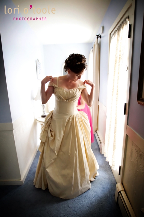 Lauren and Chris’s wedding was an immense pleasure to photograph. Lauren wore a pale gold Ellana Couture dress made from Doupioni silk. A simple ceremony was held at one of my favorite places – Chapel of Our Lady Restoration – a very tiny chapel from the 1800’s that perches on a rock cliff overlooking the Hudson River in Cold Spring. An intimate dinner party for family and friends followed at Hudson House Inn. And although I have used the words simple and intimate here, there was nothing simple about the fact that every little detail was put into this wedding. A handmade ring bearer pillow, accent diamonds from two grandmother’s wedding ring incorporated into Lauren’s ring, a piece of a meteorite used in Chris’s wedding ring, I could go on forever…. And the best part of this was that I had my own place card for dinner! Something that has only happened at a few weddings out of the hundreds I have worked at. Having dinner is part of every full day wedding I work at, but I’m not usually given ‘honored guest’ status too. Thanks Lauren & Chris!